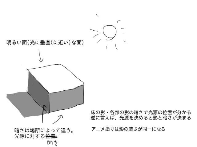 直方体のような、平面で構成された物体は影をつけるのが楽です。